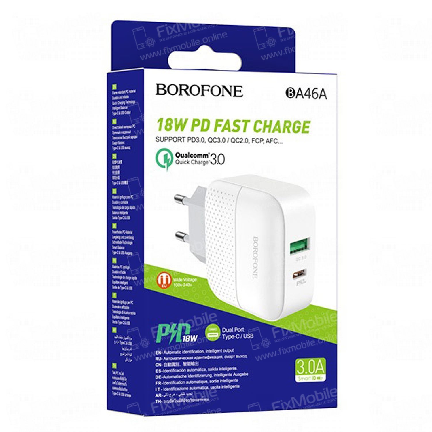 Сетевое зарядное устройство Borofone BA46A USB/Type-C (белое)
